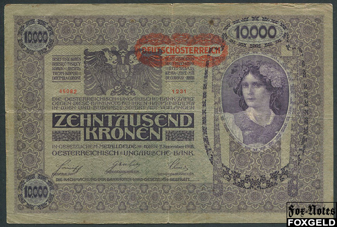 Австрия 10000 крон 1918 1920. О.с. два женских портрета aF P:65 / KK149a 700 РУБ