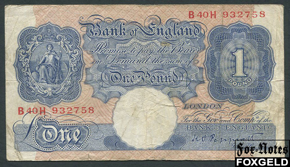 Великобритания Bank of England 1 фунт ND(1940) Sign. Peppiat F BE47 / P:367a 800 РУБ