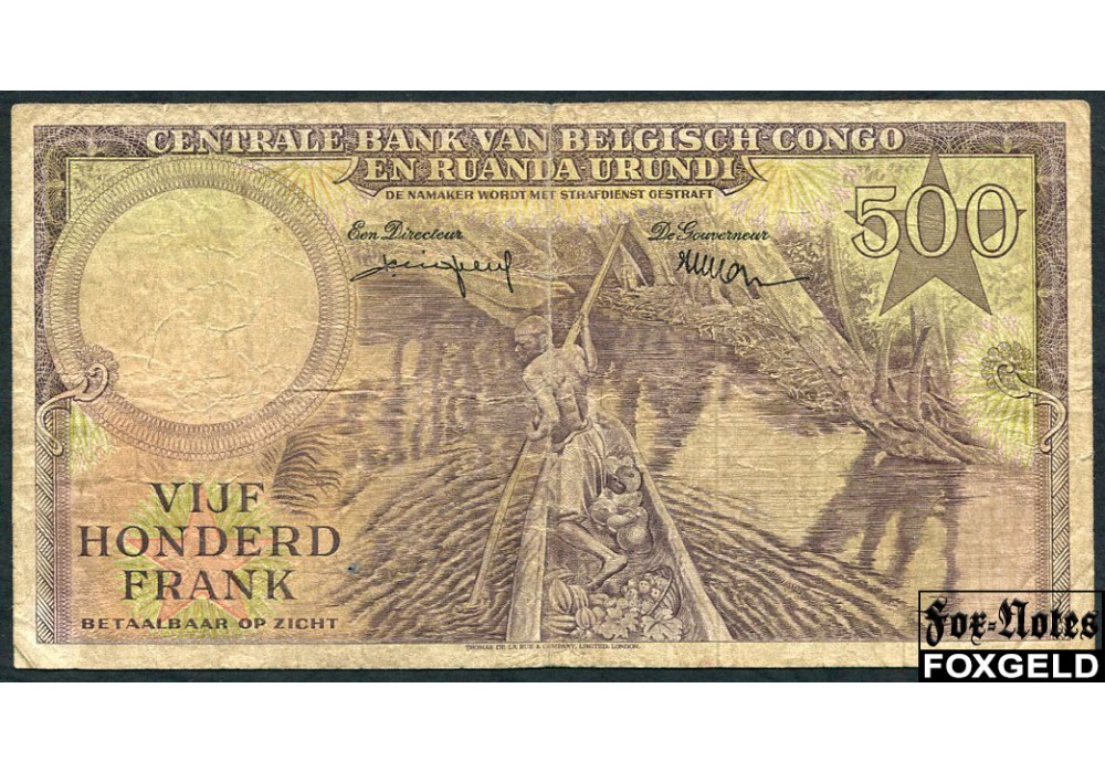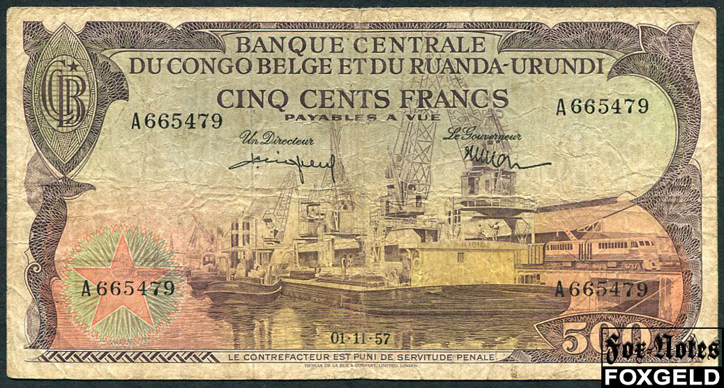 Бельгийское Конго Banque Centrale du Congo Belge et du Ruanda-Urundi 500 франков 1957 VG-aF P:34 16000 РУБ