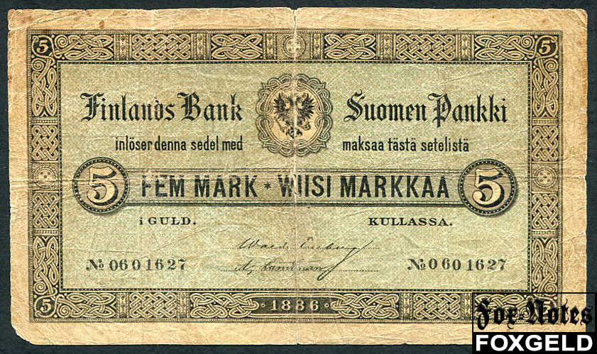 Финляндия 5 марок золотом 1886 в/з цифра 5 в центре. Eneberg, Landtman G P:А50b 18500 РУБ