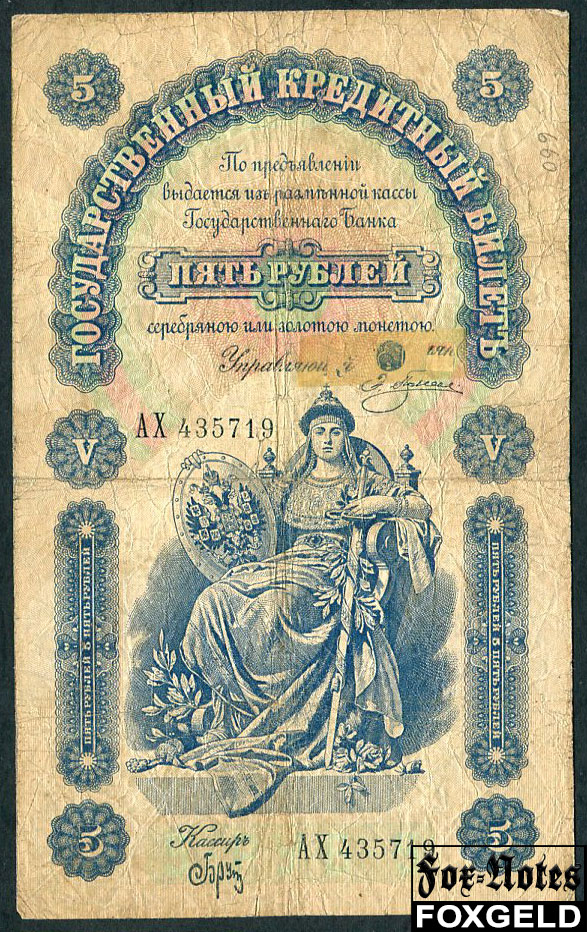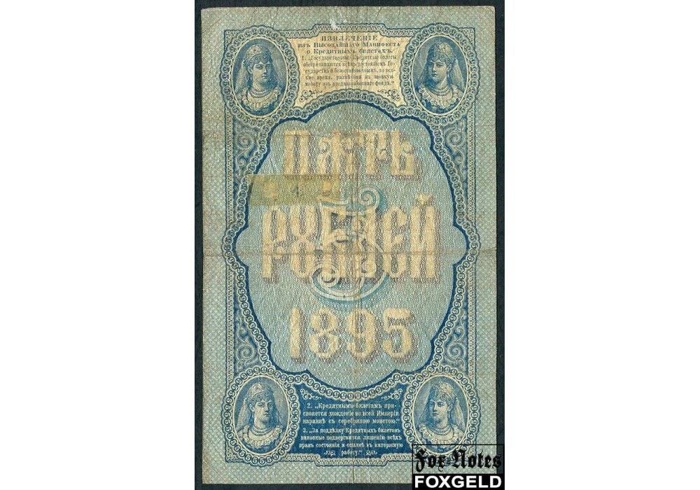 Российская Империя 5 рублей 1895 Кассир Брут FN:49.1 45000 РУБ