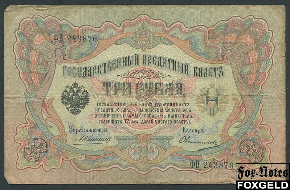 Российская Империя 3 рубля 1905 Коншин Овчинников F FN:82.2 250 РУБ