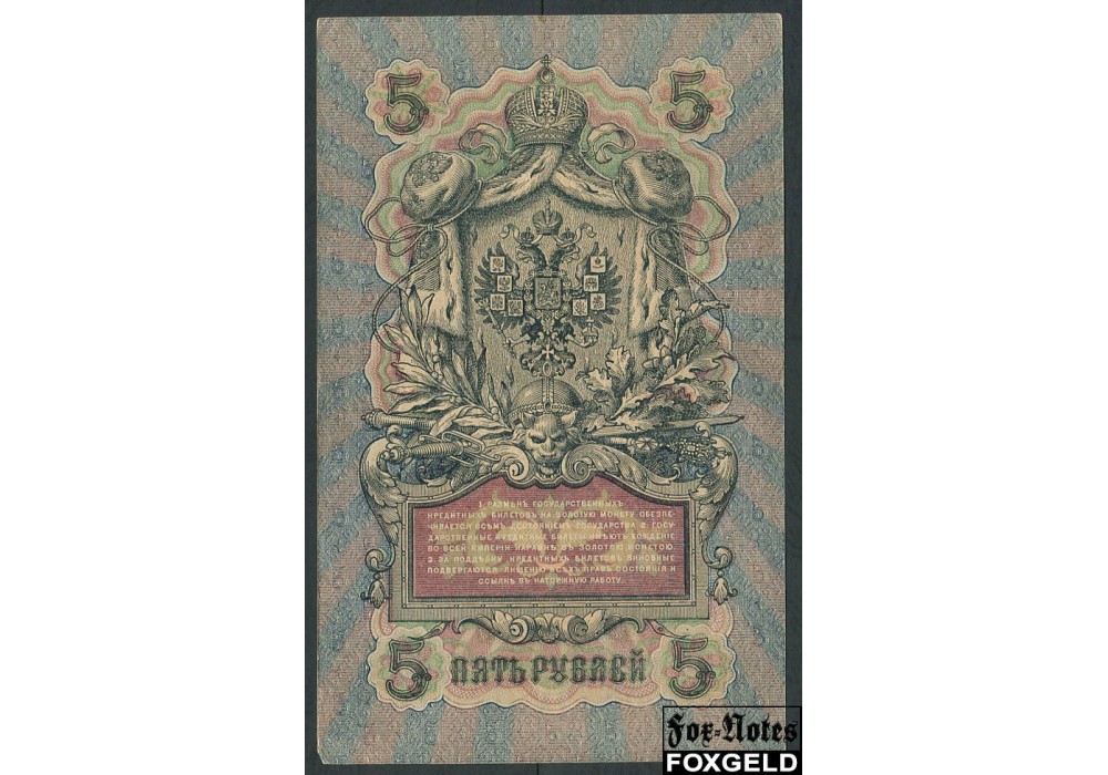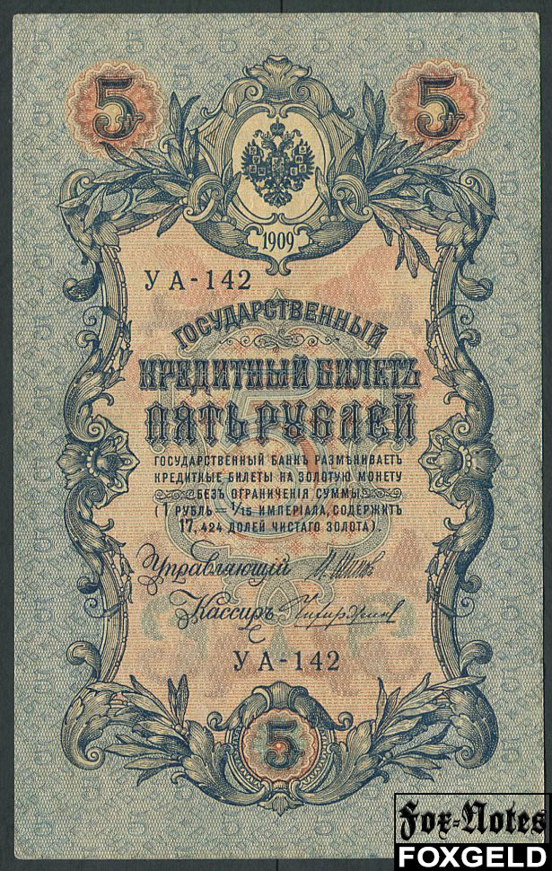 Российская республика 5 рублей 1909 Чихирджин. Советское Пр-во VF FN:83.3 100 РУБ