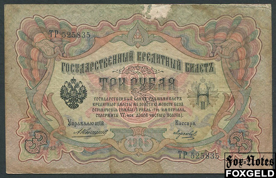 Российская Империя 3 рубля 1905 Коншин Морозов VG FN:82.2 180 РУБ