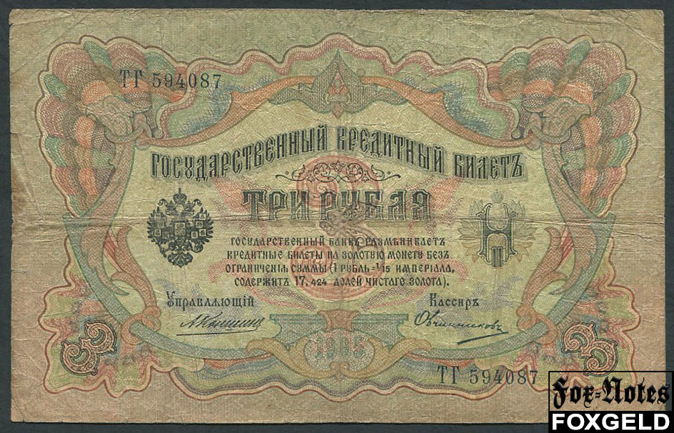 Российская Империя 3 рубля 1905 Коншин Овчинников VG FN:82.2 180 РУБ
