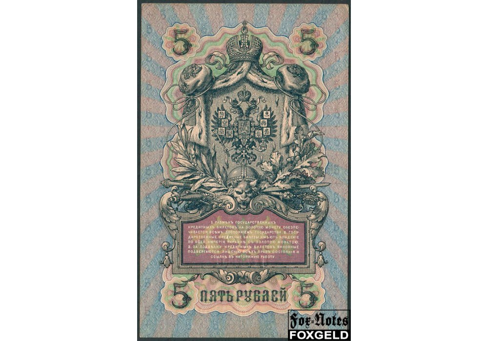 Российская Империя 5 рублей 1909 Коншин Сафронов VF FN:83.1 800 РУБ