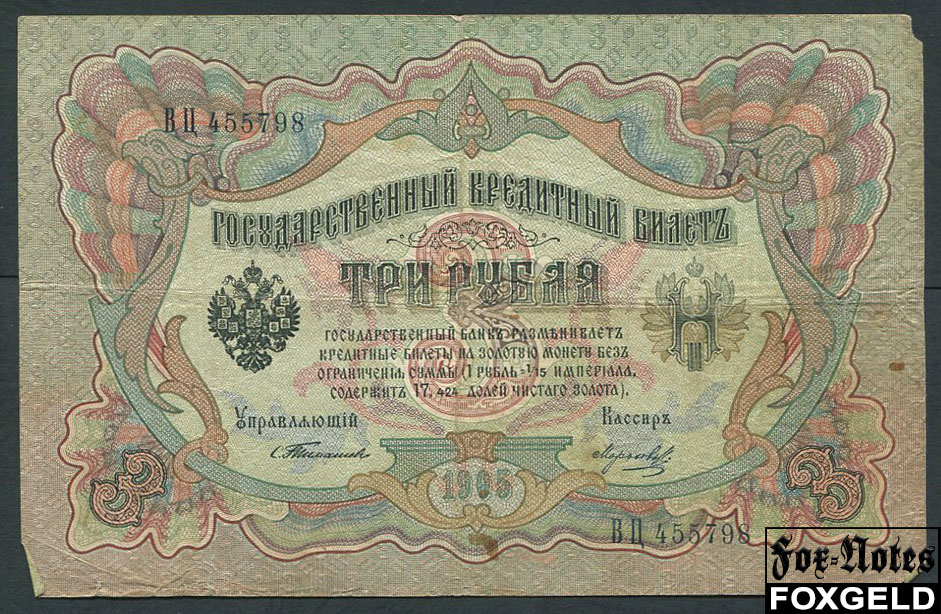 Российская Империя 3 рубля 1905 Тимашев Морозов VG-aF FN:82.1 2000 РУБ