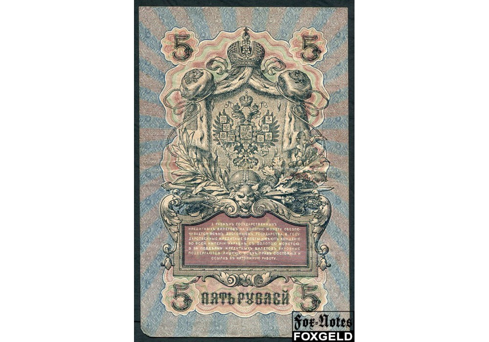 Российская республика 5 рублей 1909 (1917) Выпуск Временного правительства, П. Барышев F FN:83.3 200 РУБ