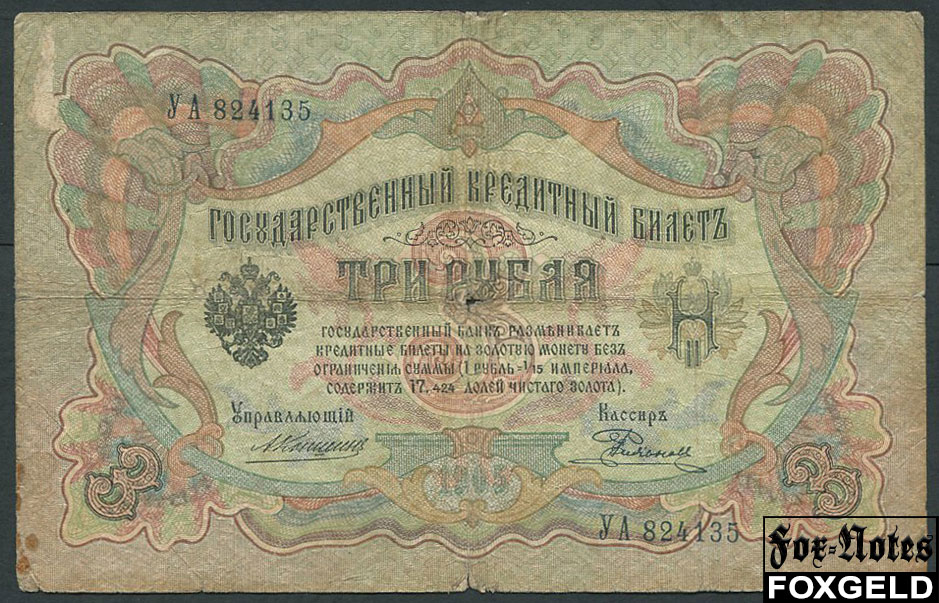 Российская Империя 3 рубля 1905 Коншин Родионов VG FN:82.2 180 РУБ