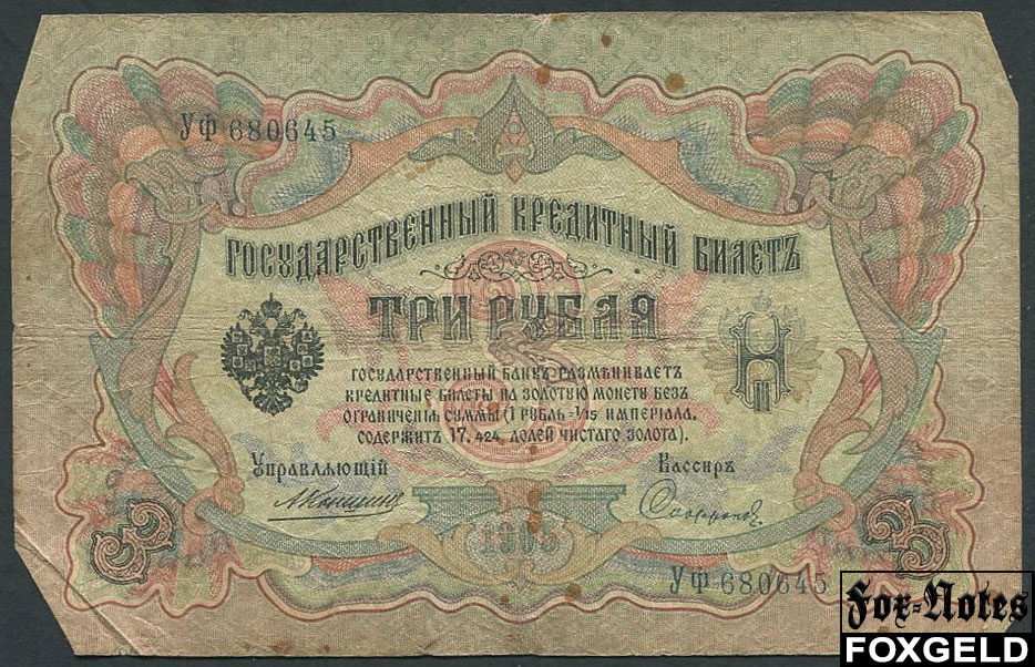 Российская Империя 3 рубля 1905 Коншин Сафронов VG FN:82.2 180 РУБ