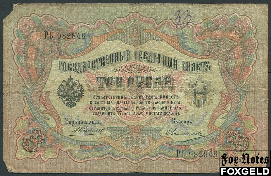 Российская Империя 3 рубля 1905 Коншин Овчинников VG FN:82.2 180 РУБ