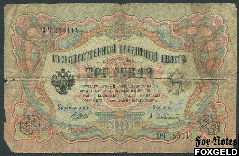 Российская Империя 3 рубля 1905 Шипов Афанасьев Императорское Пр-во VG FN:82.3 100 РУБ