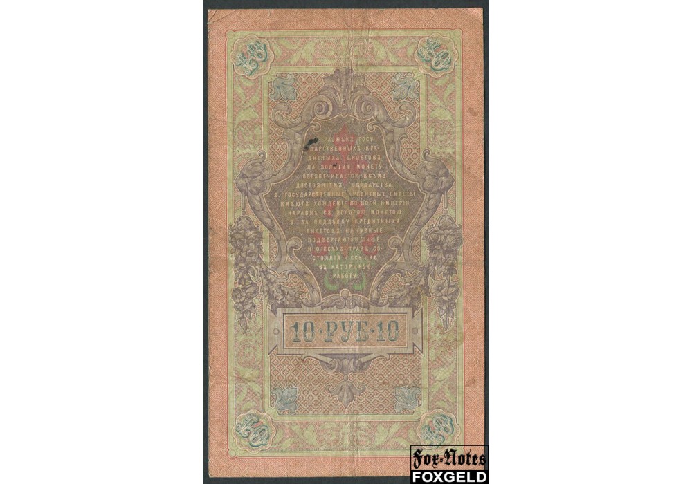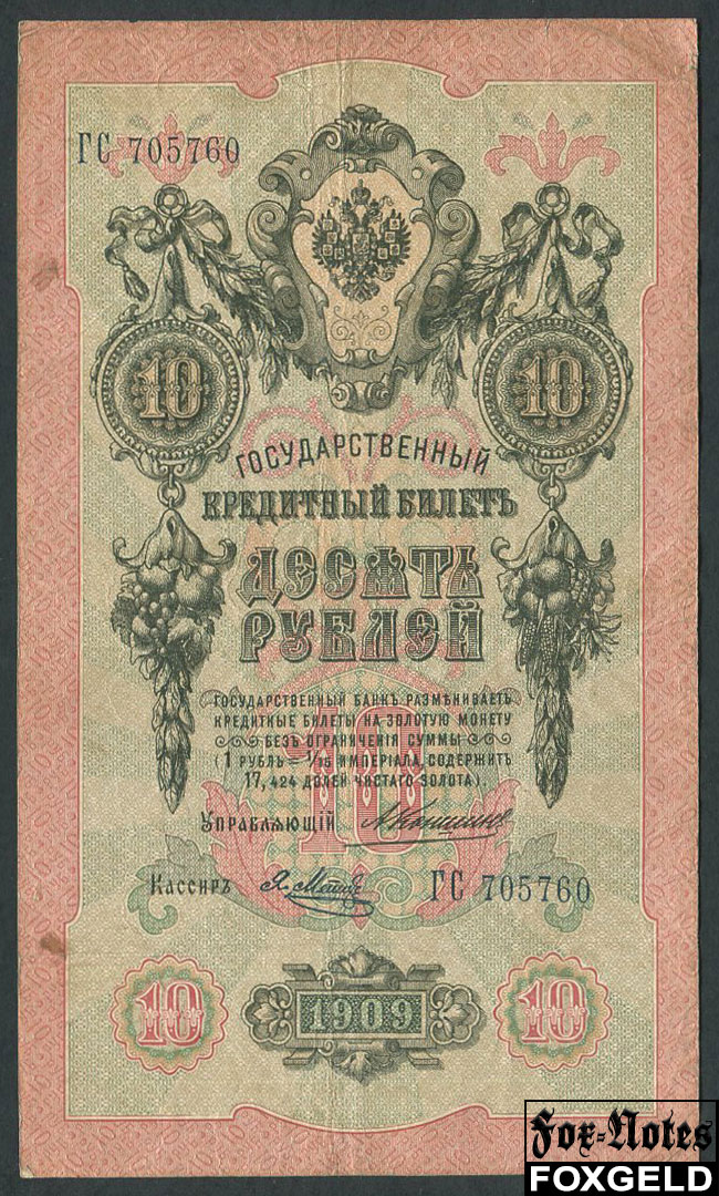Российская Империя 10 рублей 1909 Коншин Я. Метц F FN:84.2 400 РУБ