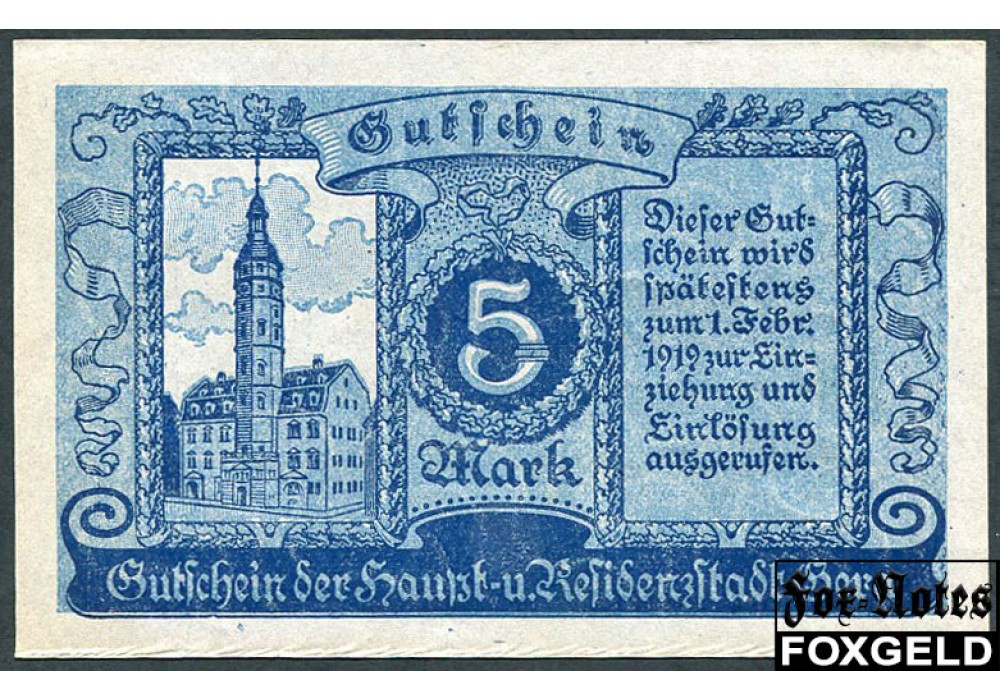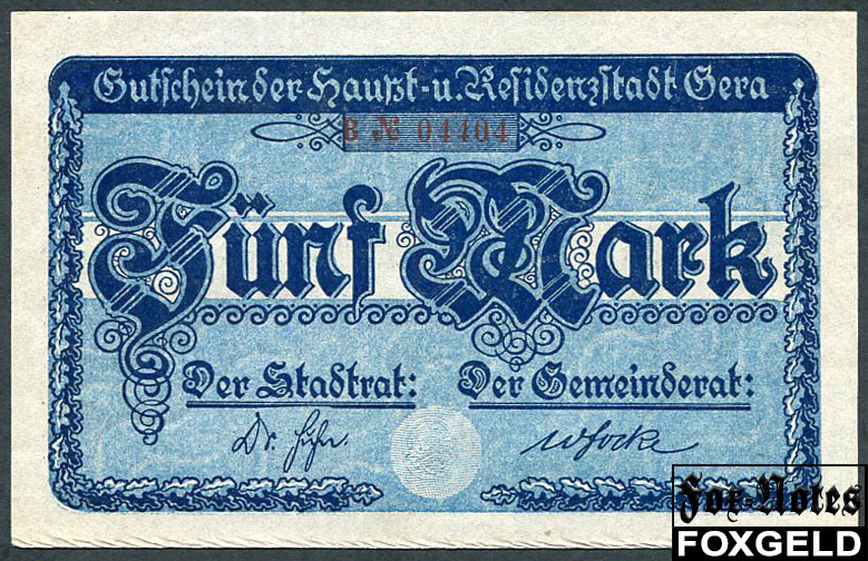 Gera Thuringen 5 Mark 1919 aUNC B3:172.01.c 730 РУБ