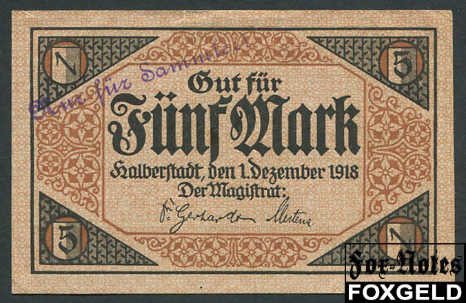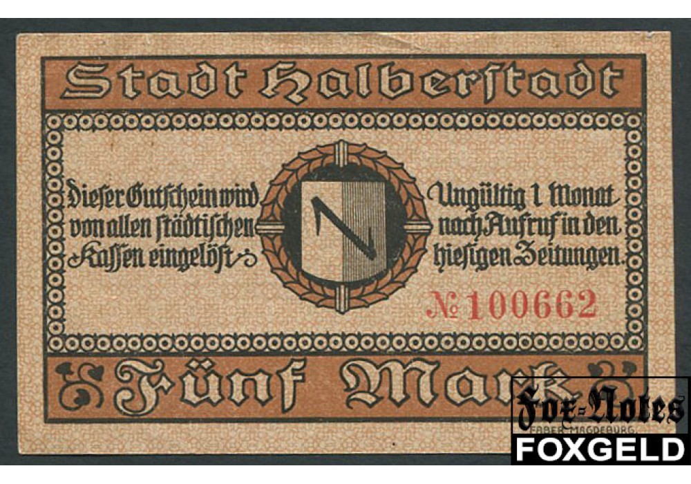 Halberstadt Provinz Sachsen 5 Mark 1918 №100662