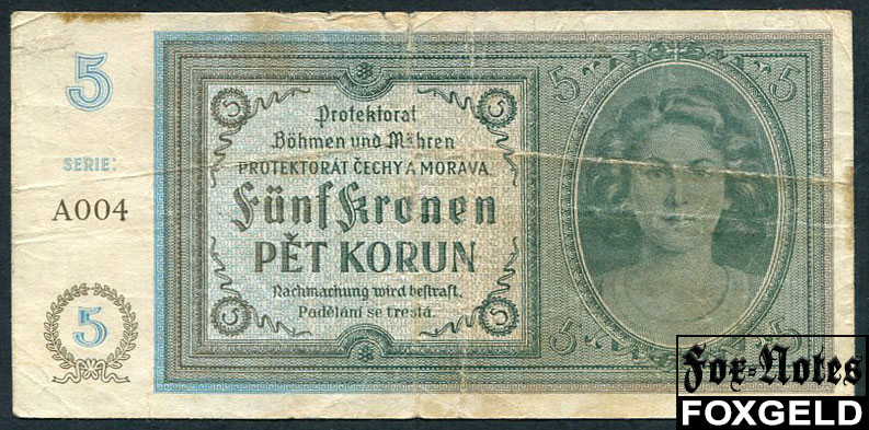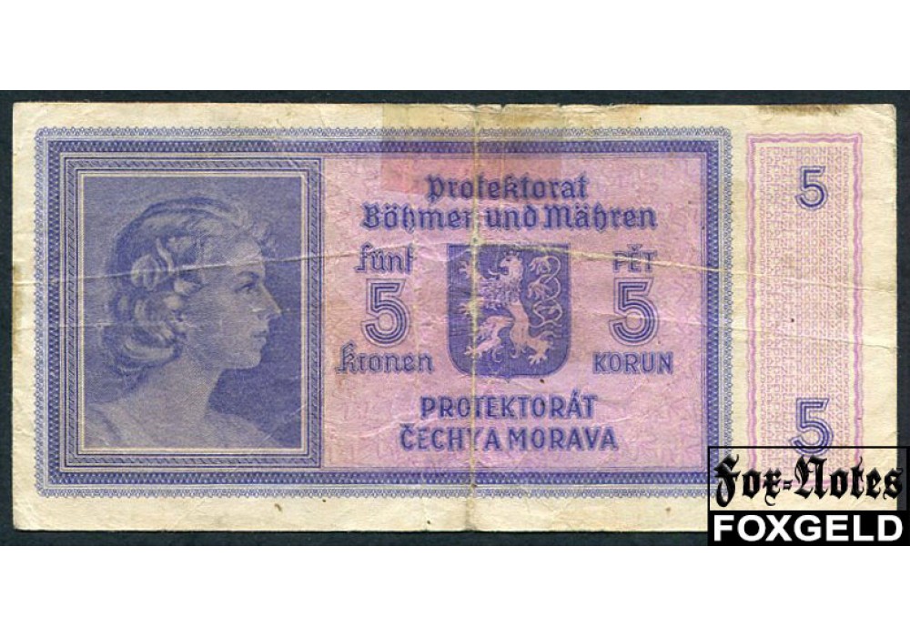 Протекторат Богемия и Моравия 5 крон ND(1940) aF Ro:558a 850 РУБ
