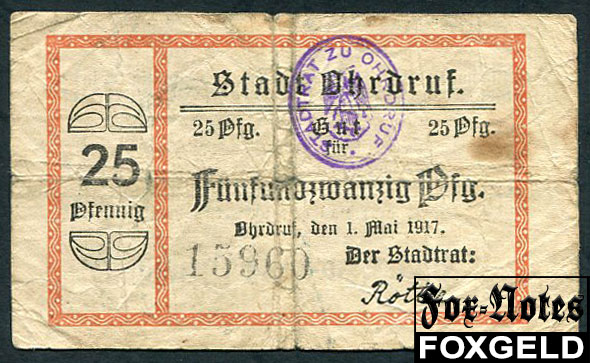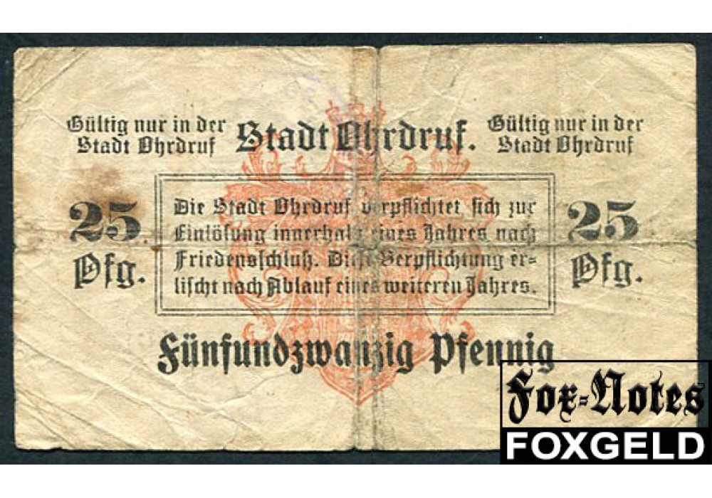 Ohrdruf Thuringen 25 Pfennig 1917 Stadt Ohrdruf В6:O16.2 15960