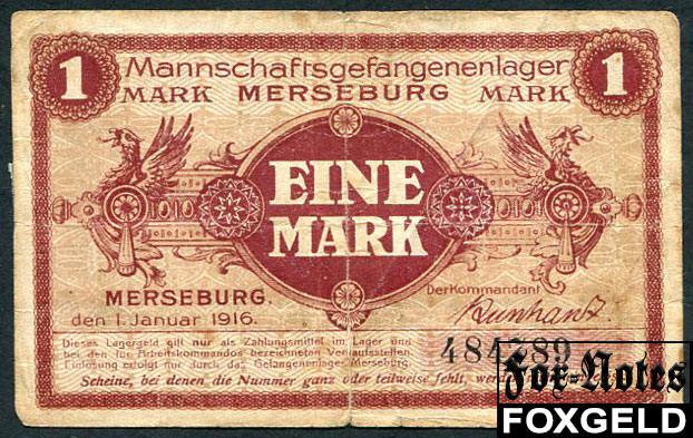 KGL Merseburg Лагерь военнопленных 1 Mark 1916 Mannschafgefangenenlager Merseburg KN 6-stellig, KN Typ I aVG Ti:05.05.1a 3700 РУБ