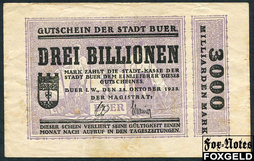 Buer Westfalen 3 Billionen Mark 1923 25. October 1923. В7:659.h AA0000115