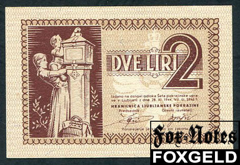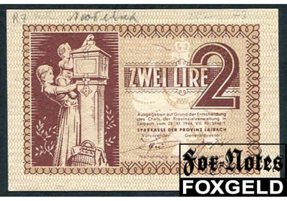 Лайбах Sparkasse der Provinz Laibach 2 лиры 1944 aUNC Ro:619 {1}