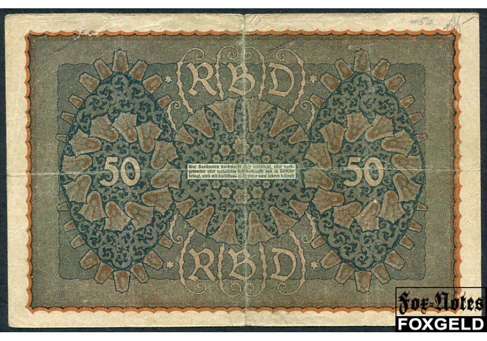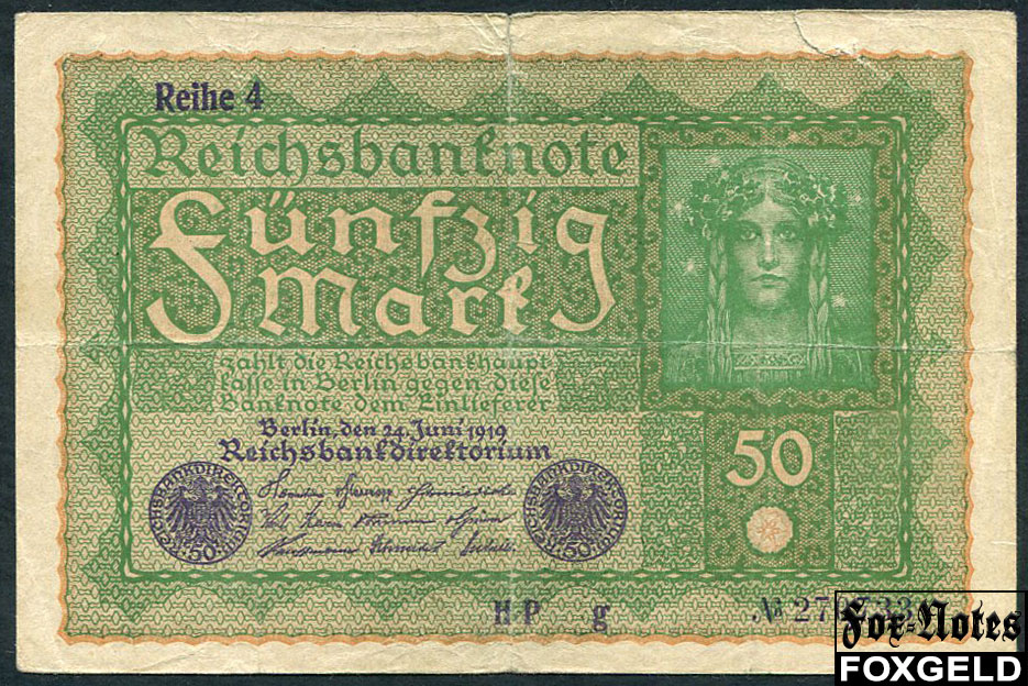 Германия Reichsbank 50 марок 1919 Reihe 4 Ro:62d HP g