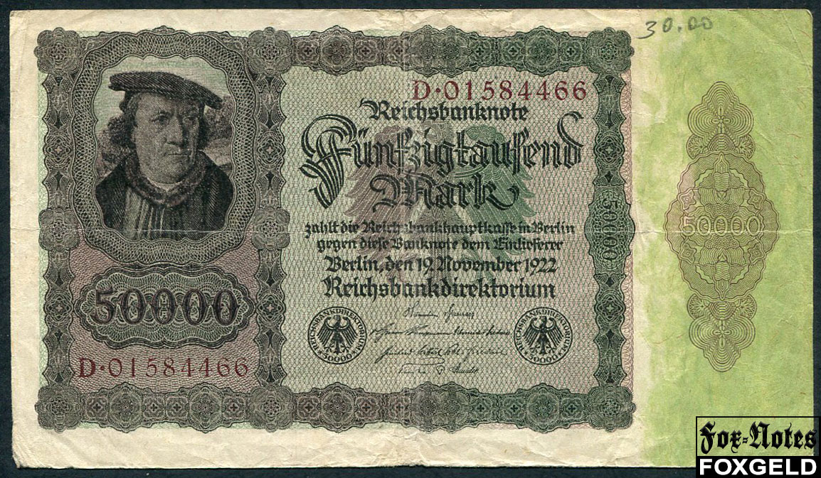 Германия Reichsbank 50000 Mark 1922 F Ro:78 400 РУБ