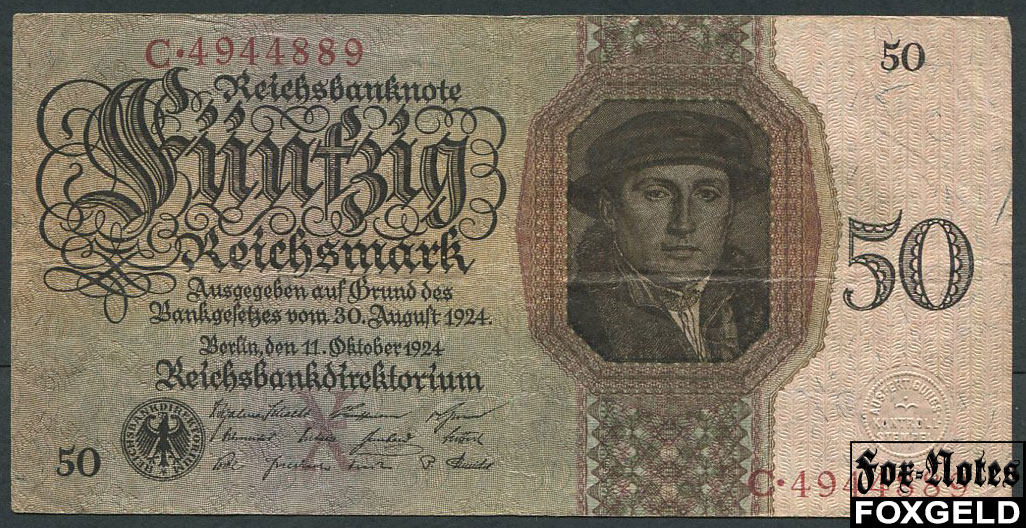 Германия Reichsbank 50 Reichsmark 1924 10. Oktober 1924. VF Ro:170а 3500 РУБ