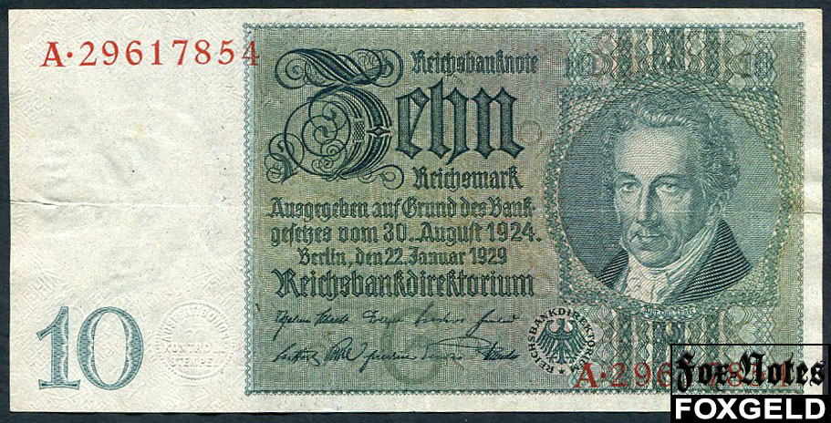 Германия Reichsbank 10 рейхсмарок 1929 1 тип (металлография) aVF Ro.173a 400 РУБ