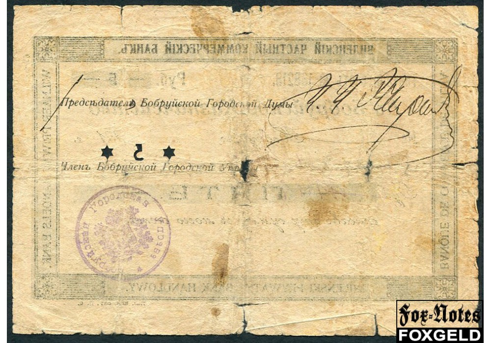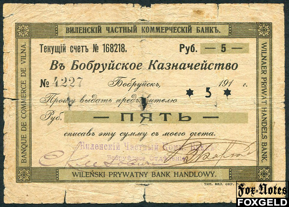 Бобруйск Виленский Частный Коммерческий Банк 5 рублей ND(1917) В углах дубовый лист aG FN:F392.12.1a 35000 РУБ