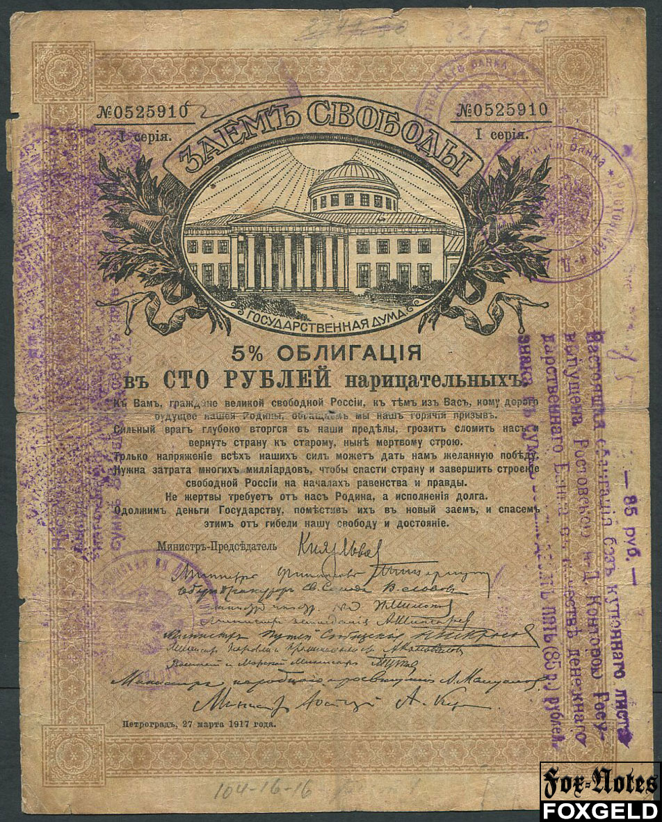 Ростов на Дону Ростовская Контора Государственного Банка. 85 рублей ND(1918) VG FN:F2810.N16.1 8500 РУБ