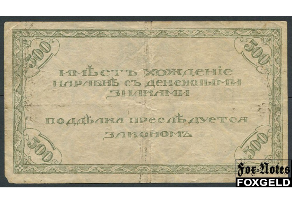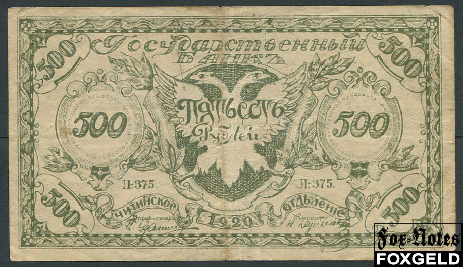 Российская Восточная Окраина (Чита, Семенов) 500 рублей 1920 2 выпуск. Серия П-375. Рисунок т.-зеленый. F FN:E335.2.2 1400 РУБ