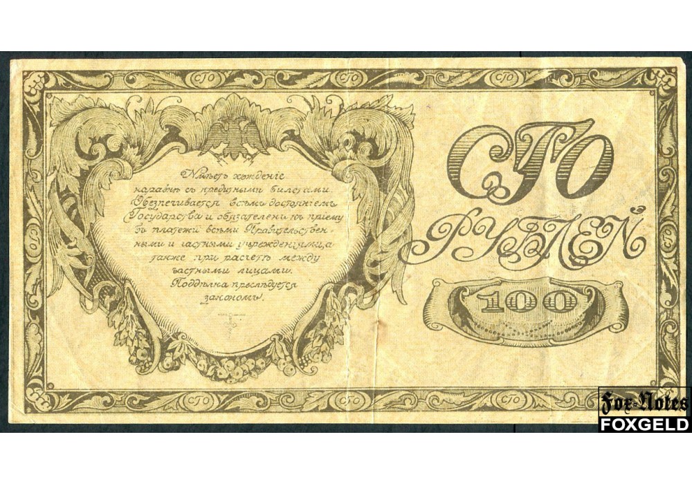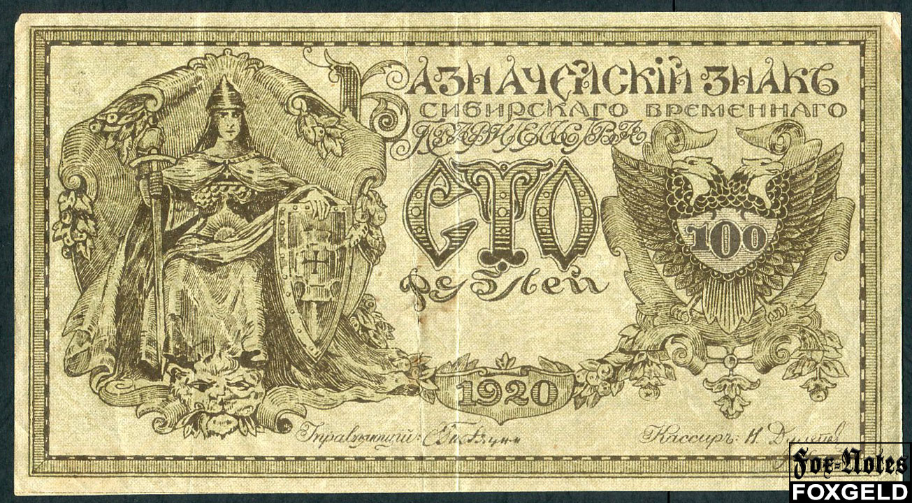 Сибирское Временное Правительство (Семенов) 100 рублей 1920 Пробные. Коричневые. VF FN:E335.PF-6 120000 РУБ