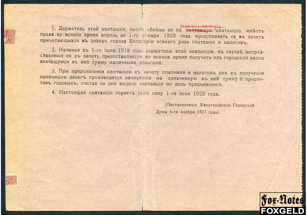 Евпатория. Евпаторийская Городская Управа 100 рублей 1917 VG FN:F1100.1.1 / K6.8.1 25000 РУБ