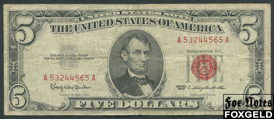 США United States Note 5 долларов 1963 Series of 1963 Sign. Granahan Dillon F Fr1536 2700 РУБ