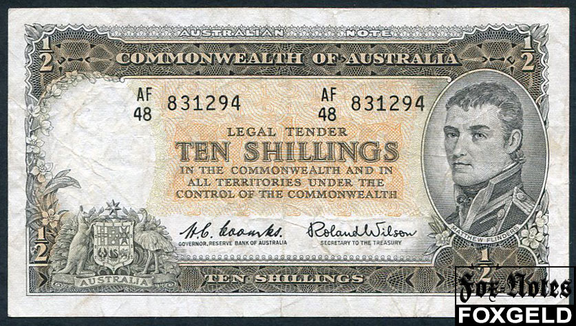 Австралия COMMONWEALTH OF AUSTRALIA 10 шиллингов ND(1961) Sign. H. C. Coomb F-aVF P:33a 3800 РУБ