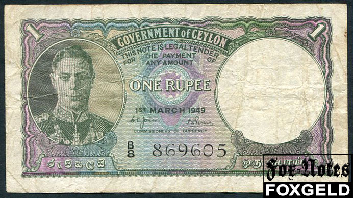 Цейлон Government of Ceylon 1 рупия 1949 aVF P:34 3200 РУБ
