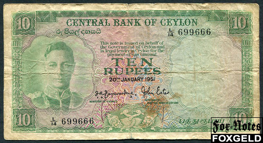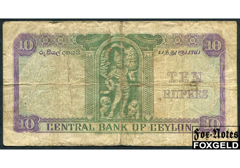 Цейлон 10 рупий 1951 VG-aF P:48 9000 РУБ