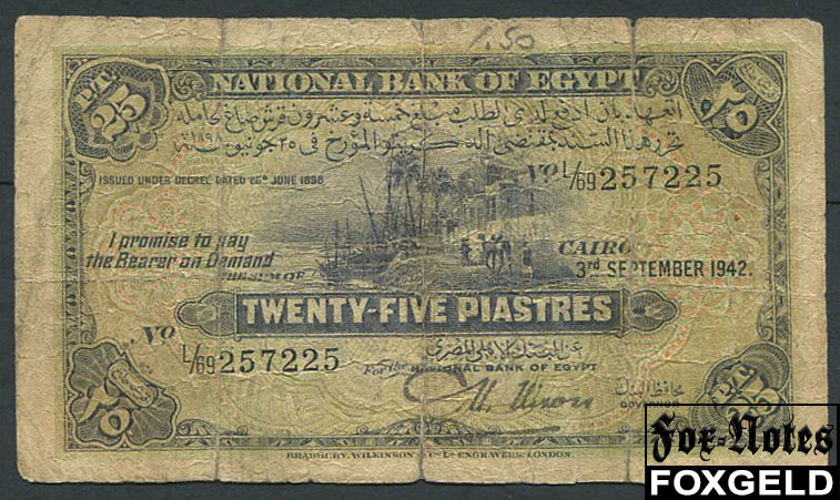 Египет National Bank Of Egypt 25 пиастров 1942 Sign. Nixon. P:10c L/69