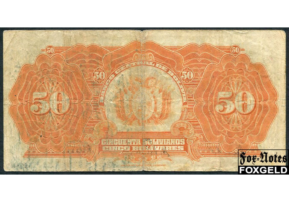 Боливия 50 боливиано 1928 Sign. Fernando Arce - Manuel Prudencio - Humberto Cuenca de la Riva. F P:124a 2200 РУБ
