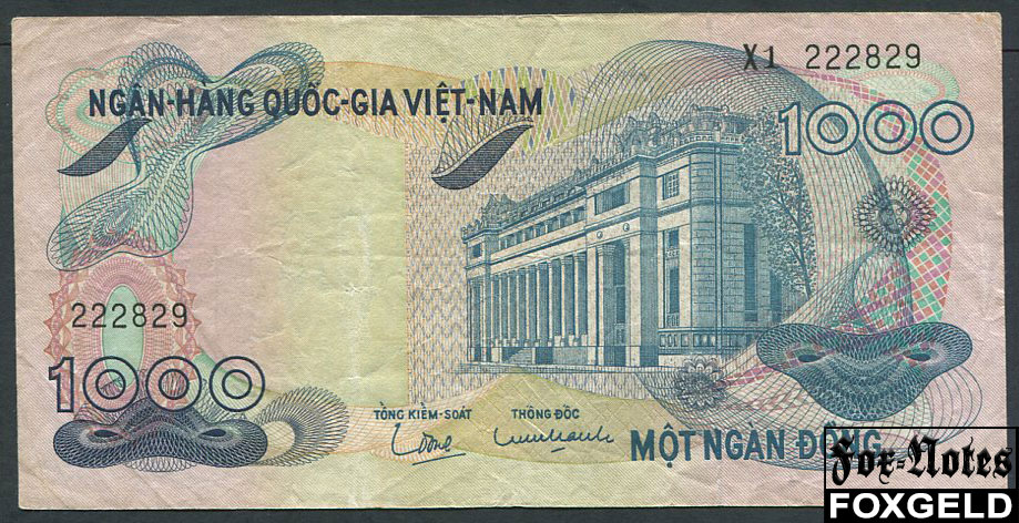 Вьетнам Южный 1000 донгов ND(1972) P:28a X1