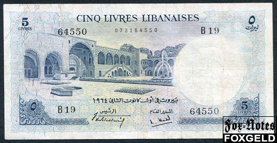 Ливан 5 ливров 1964 VF P:56 10000 РУБ