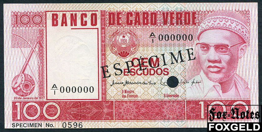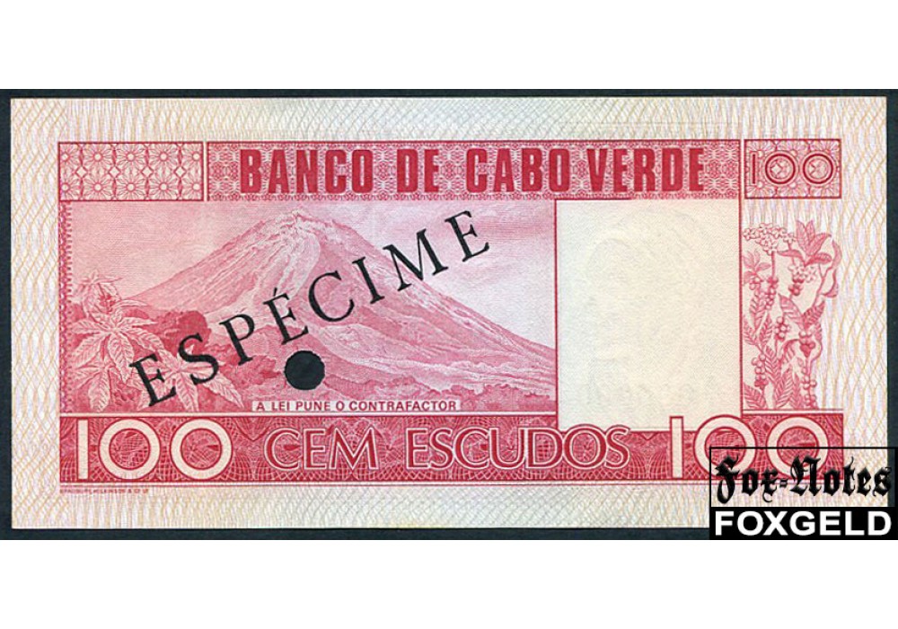Кабо-Верде 100 эскудо 1977 SPECIMEN ОБРАЗЕЦ P:54 A/I