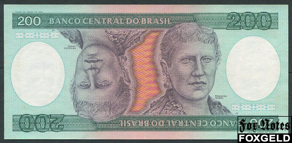 Бразилия 200 крузейро ND(1984) Sign.21 (Ernane Galvêas / Affonso C. Pastore). Литеры АА. Series 2997-4960 UNC P:199b 120 РУБ