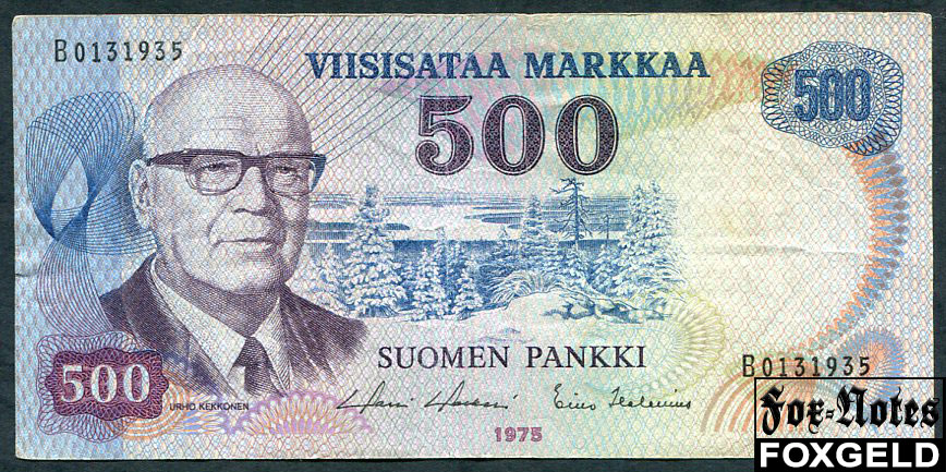 Финляндия 500 марок 1975 F-aVF P:110 13500 РУБ