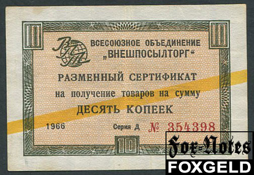 ВНЕШПОСЫЛТОРГ 10 копеек 1966 Желтая полоса И 1.2.18 Д 354398