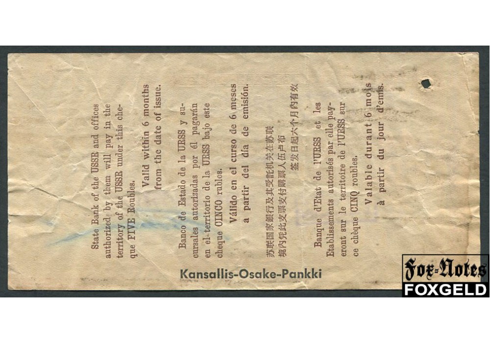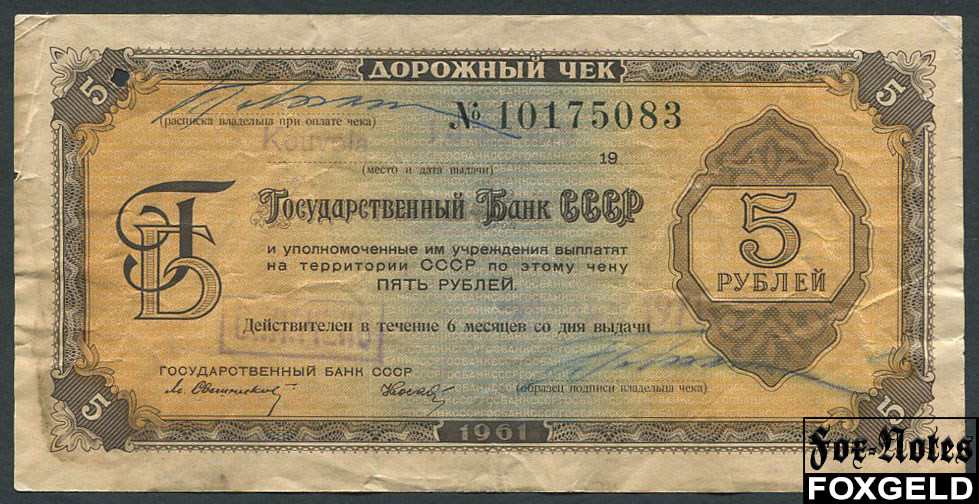 ГОСБАНК СССР 5 рублей 1961 Дорожный чек / Свешников-Носко /текст на 4 языках VF И 7.7.1 900 РУБ