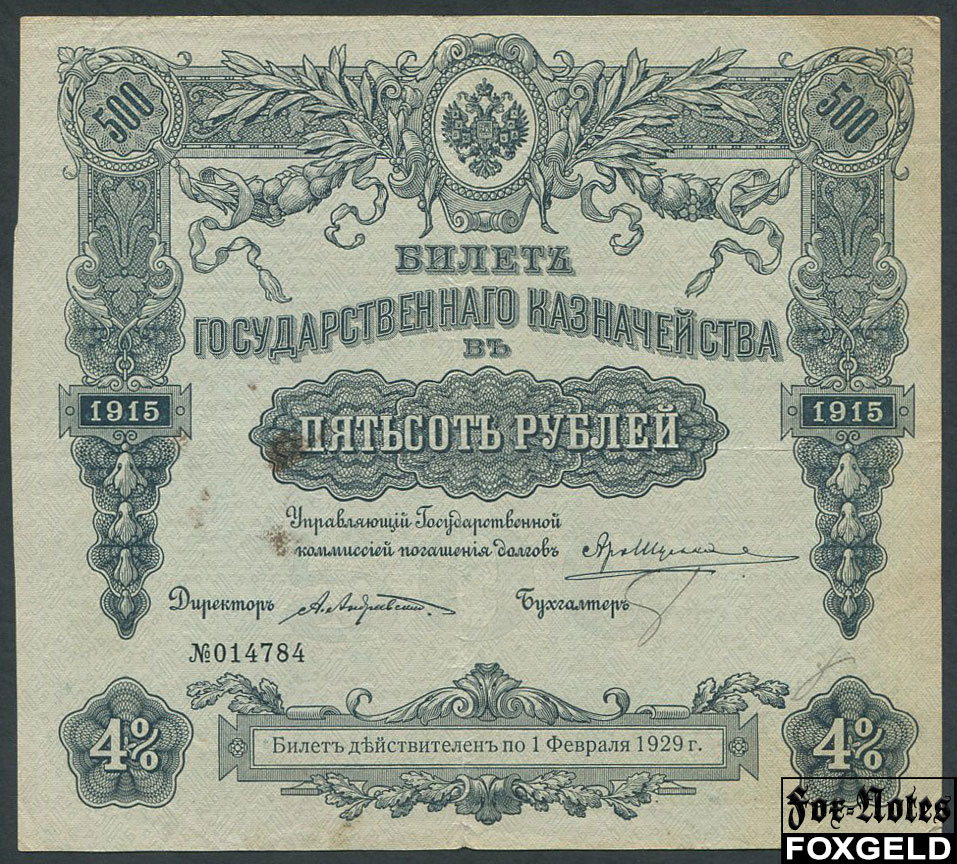 Россия 500 рублей 1915 Билет Государственного Казначейства Серия 463 F-aVF FN:А10.29.2h / КБ-21.2 1350 РУБ