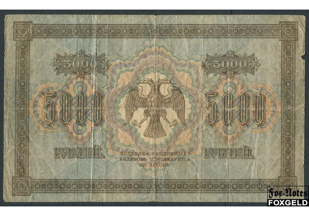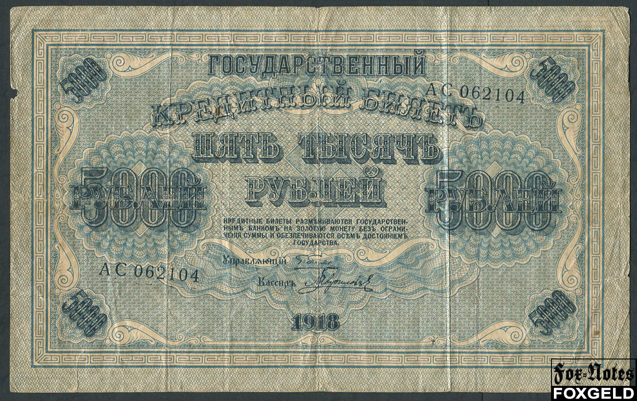 РСФСР 5000 рублей 1918 Кассир Гаврилов. Сдиг номера. VG-aF FN:119.1 3000 РУБ