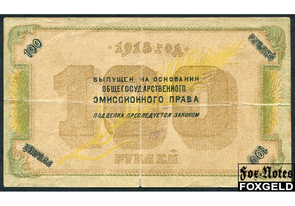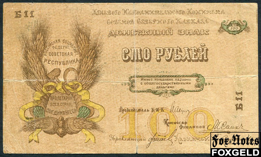 Северо-Кавказская ССР Краевой Исполнительный Комитет 100 рублей 1918 VG-aF FN:Е215.10.1 5600 РУБ