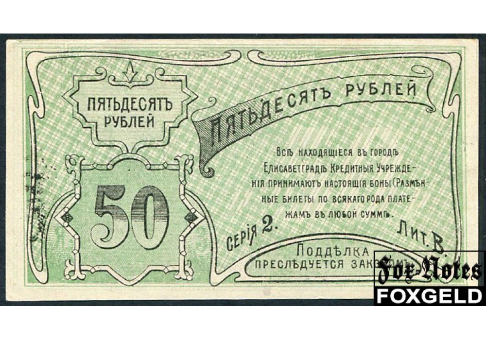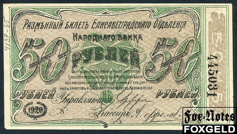 Елизаветград Елизаветградское Отделение Народного Банка 50 рублей 1920 Cерiя 2 Лит. В. aUNC FN:F1143.3.2b 4500 РУБ